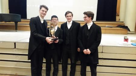 The overall winners were a team from College. Oscar Parry-Wingfield, Chris Yacoumatos, Damien Yiu and Rhodri Whiteley were presented with the exquisite trophy by the Vice-Provost. We would like to thank Dr. Moston for organising the event, as well as Mr. Dean and Mrs. Thorne for helping run the competition.