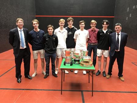 When all four Eton pairs won their finals it was generally accepted that this feat had not been achieved before! The first pair were victorious against St Paul’s in a 6 game thriller; Eton's other pairs each won their games, 3 – 1 against Wellington (2nd pair), 3 – 1 against Malvern (U16s) and 3 – 1 against Wellington (U15s).